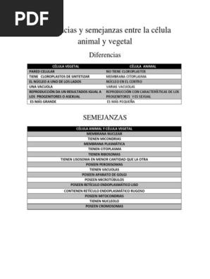 Diferencias De La Celula Animal Y Vegetal En Un Cuadro Comparativo