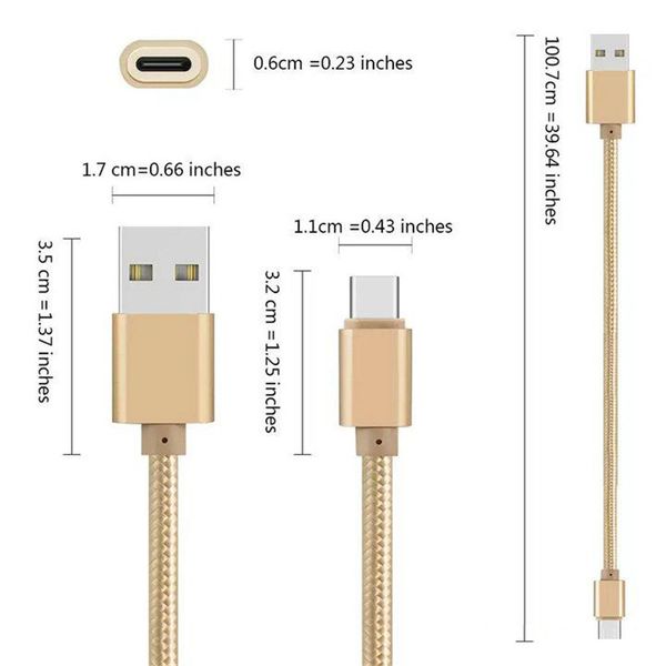 Cable Usb 1 M Sirena Tela Trenzada De Nylon De Carga Rápida Tipo C Cargador De Datos Cabo Para Samsung S7 X8 Xiaomi Huawei Htc Htc 500 Unids Lote